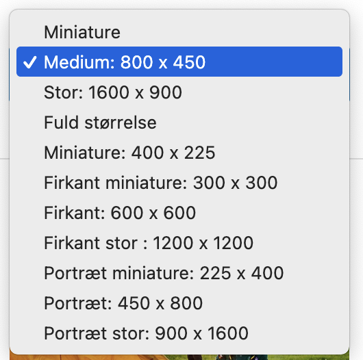 Når det billede er så stort som det er så kan du med fordel vælge at bruge “Medium: 800 x 450” størrelsen: